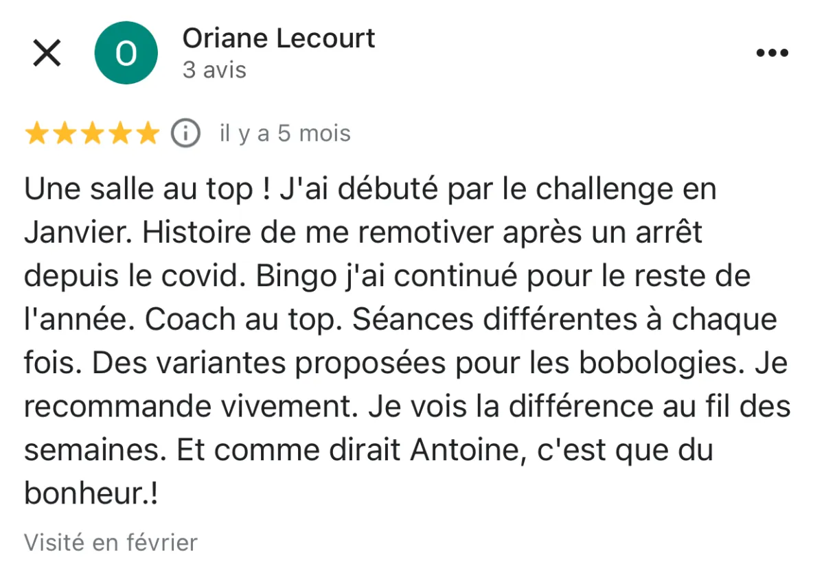 Oui, si vous participez à 8 séances pendant les 5 semaines et que vous n’êtes pas satisfait(e), nous vous remboursons intégralement.